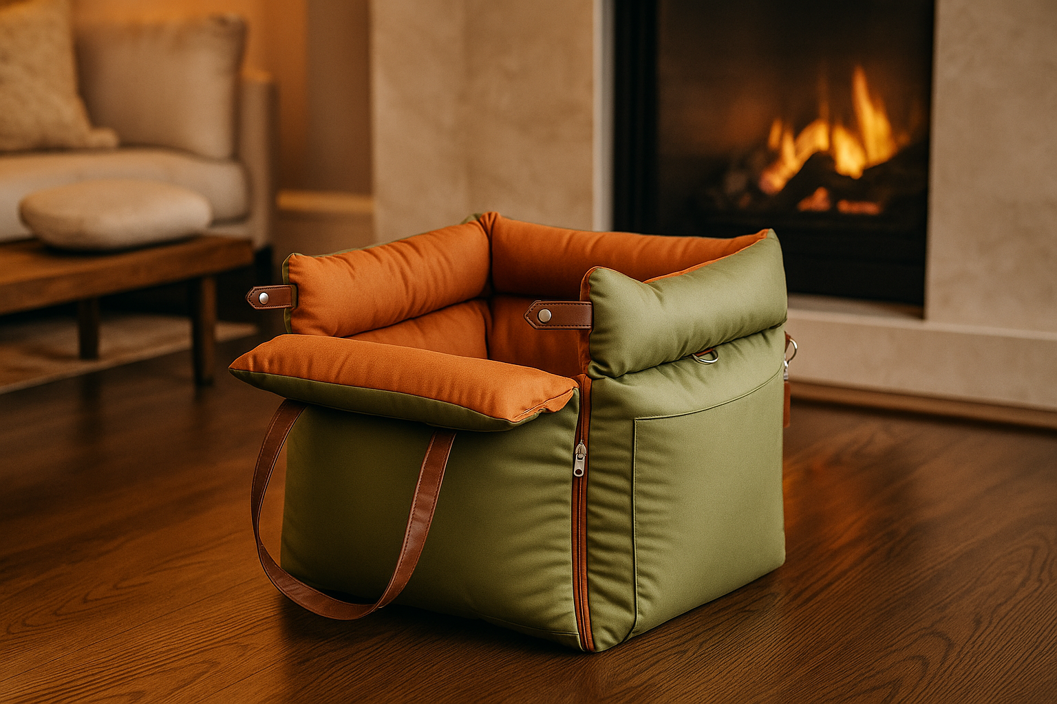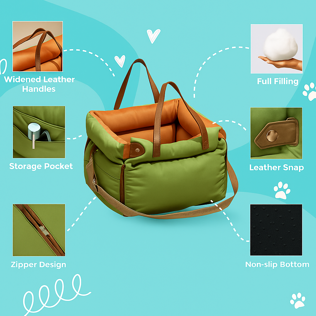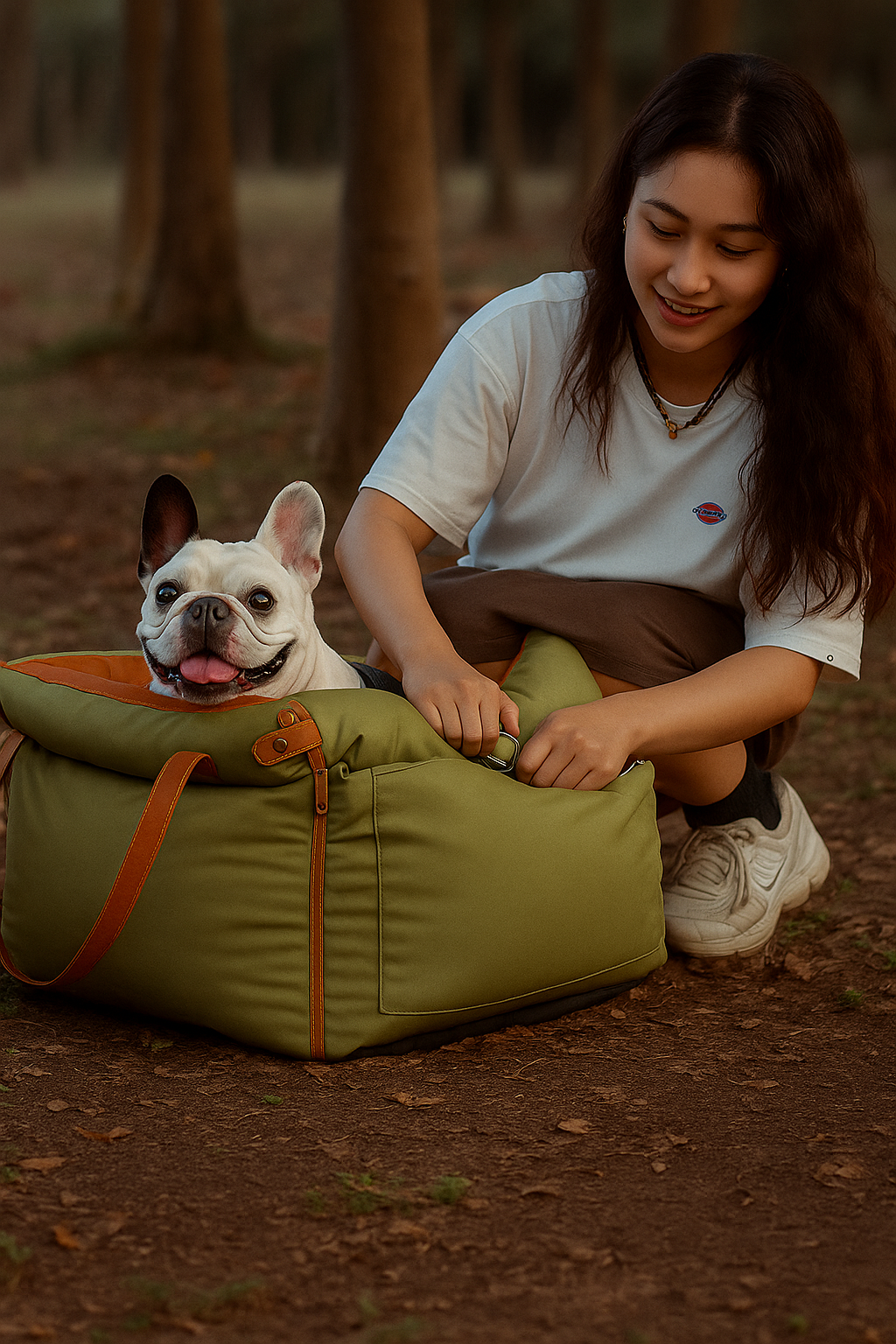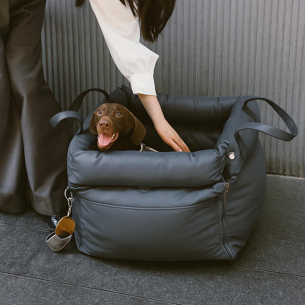 PawMaxi LuxRide™ – Premium Faux Leather Car Seat & Bed for Pets